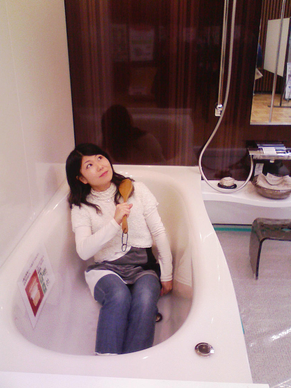 会場には、ユニットバスやシステムキッチンが展示され、新しい暮らしに胸が膨らむ。